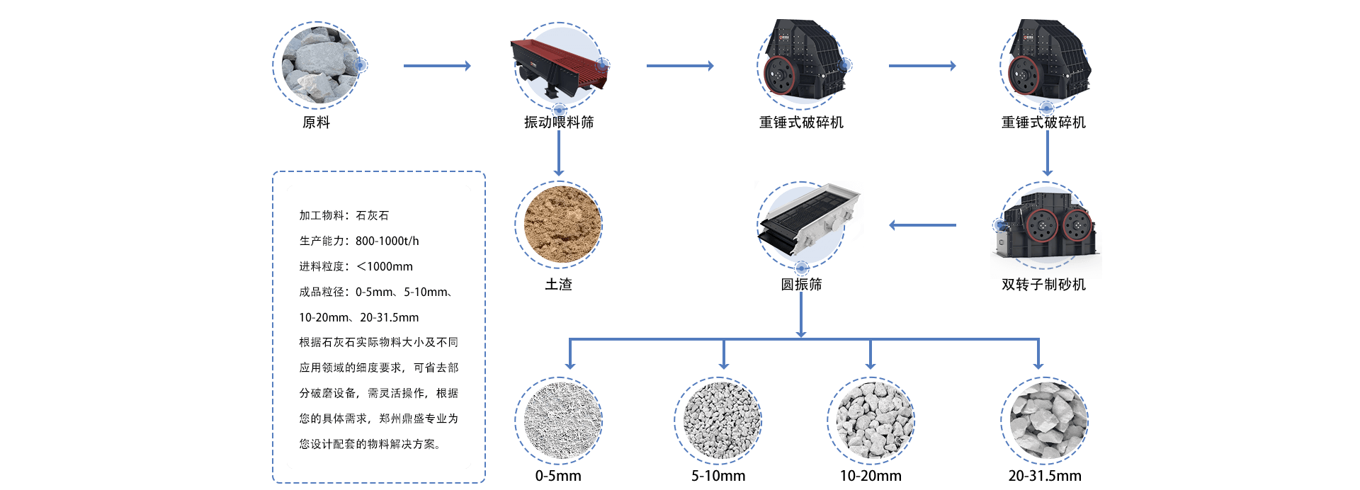 河卵石、花岗岩、玄武岩、铁矿石、石灰石、石英石、煤矸石、建筑垃圾等